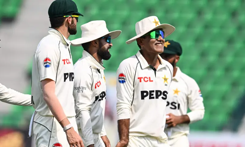 Tristan Stubbs struggled to cope with the sharp turn and was on two when a premeditated reverse sweep off Noman safely landed in Salman Agha’s hands.