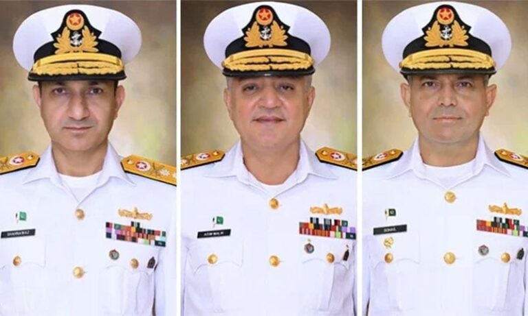 KARACHI – Pakistan Navy Commodores Muhammad Shah Nawaz Khan, Asim Sohail Malik, and Sohail Ahmed Azmi have been promoted to the rank of Rear Admiral. In recognition of their distinguished services, all three officers have also been awarded the Sitara-i-Imtiaz (Military).
